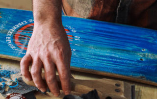 A re.SK8 foi fundada em 2021 pelo Francisco Varela, arquiteto, lisboeta, apaixonado por trabalhar madeira. É uma marca 100% portuguesa que assume um papel ativo na missão em direção ao desperdício zero, contribuindo para uma economia circular. Todas as peças são 100% recicladas, produzidas a partir dos desperdícios produzidos pela indústria do mobiliário e de skates velhos ou partidos. Estes, são feitos de Canadian Maple, uma madeira muito resistente e colorida que permite a criação de peças únicas com padrões inigualáveis. Embora o processo de transformação e reaproveitamento seja muito exigente, a re.SK8 consegue continuar a contar histórias e a contribuir para a conservação e proteção do ambiente.